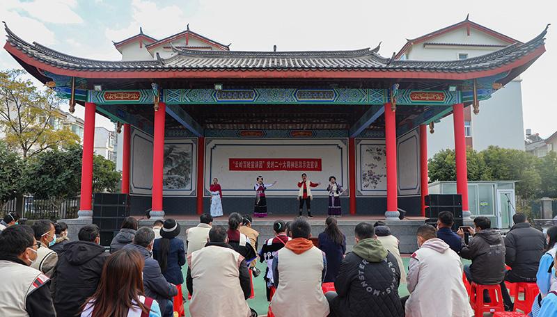 12月14日,云嶺百姓宣講團到云南省麗江市玉龍縣黃山街道開展黨的二十大精神宣講。新華社發(fā)(李佳健 攝)